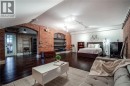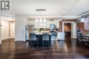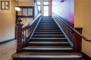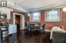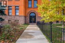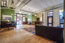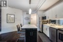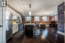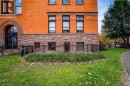Discover a truly distinctive opportunity at the historic Stinson Lofts, where old-world character and modern comfort converge. This rare main-floor corner unit offers exceptional value for its generous square footage, highlighted by a remarkable 28' x 12' private patio with sweeping views of the community playground and the lush Hamilton escarpment. Inside, soaring ceilings, exposed brick walls, and rich hardwood floors preserve the timeless charm of the 1894 Stinson School, while an airy open-concept design provides a bright and inviting flow. The stylish kitchen features quartz counters with a breakfast bar, stainless steel appliances, and in-suite laundry, seamlessly opening to spacious living and dining areas ideal for entertaining. This unique layout features 2 primary suites, the first with dual closets and a modern three-piece bath. The second private suite has it's own entrance off the dining area through french doors, with a large versatile accessway that is perfect for an office or extra storage. Believed to have once been the kindergarten classrooms of the original school, this spacious suite includes built-in shelving and a fall bathroom. It's time to move into this one-of-a-kind residence that offers a rare blend of heritage elegance, modern functionality, and unbeatable value. Includes one exclusive parking spot, P21. (id:7526)